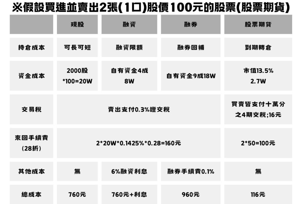 融券:交易稅 0.3%,手續費160,有額外融券手續費,總成本約 960 元