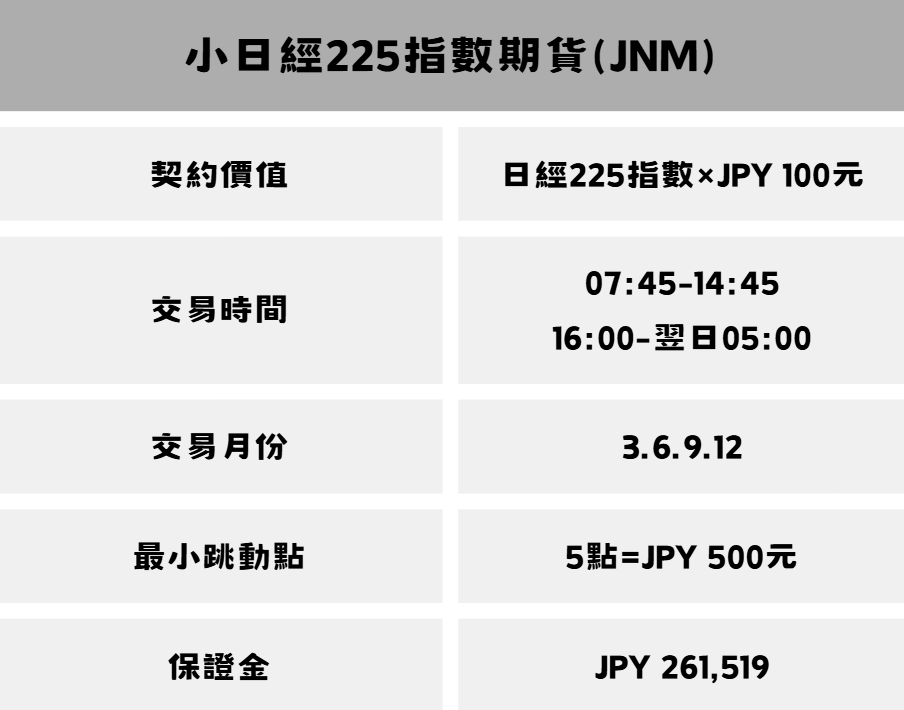 小型日經期貨合約規格(JNM)、交易時間、保證金